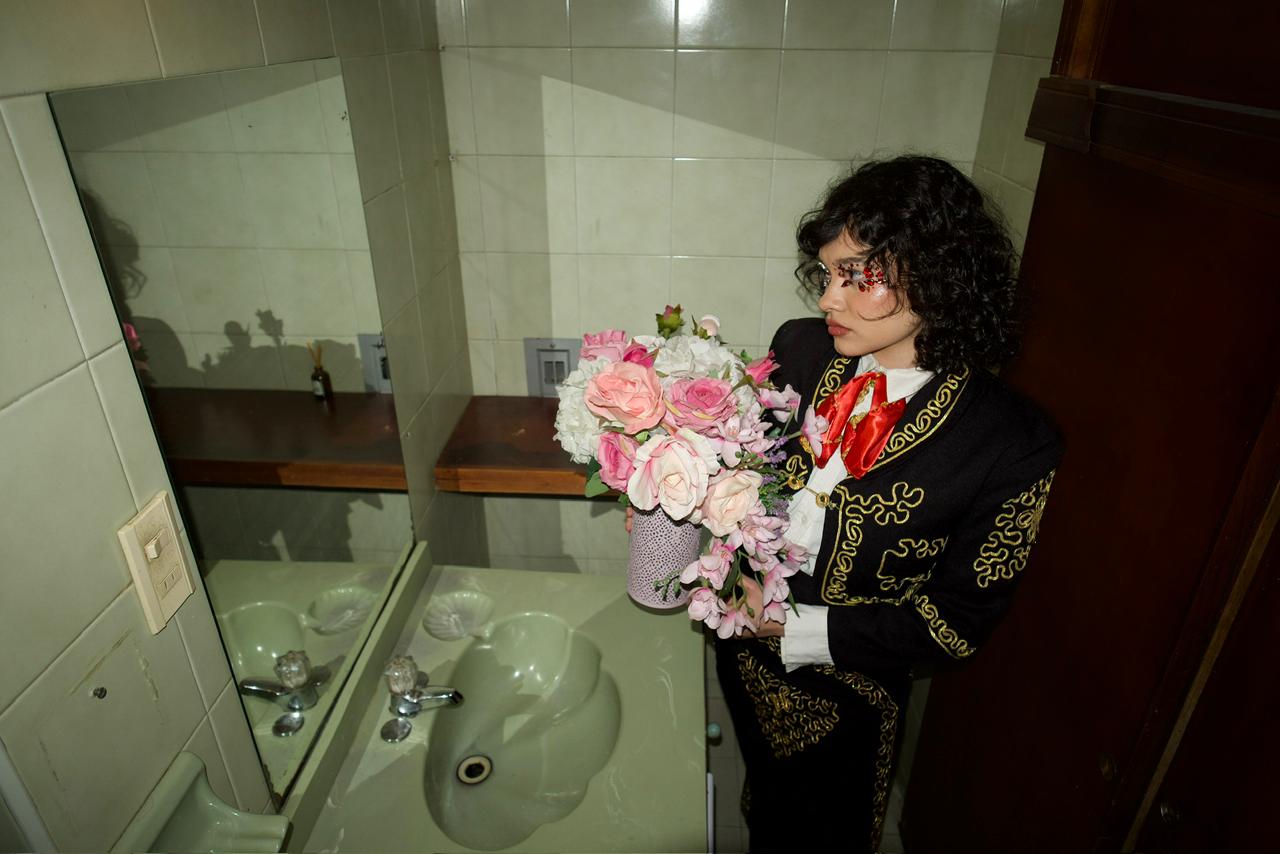 A su espalda, tres mariachis acompañan la serenata dedicada a su pareja. Giorgina, la artífice de esta muestra de amor, porta un sombrero charro y un moño rojo que resalta sobre las solapas de la chaquetilla charra con bordados dorados que luce. El maquillaje de su rostro, aunque ajeno al performance ranchero tradicional, se adapta a la escena a través de los trazos brillantes que contornean sus ojos. Sus 22 años se acoplan a la edad madura de los músicos que la escoltan: un encuentro generacional que extiende el legado de un género nacido en México, pero que encontró en Colombia una segunda familia que lo adoptó como propio.