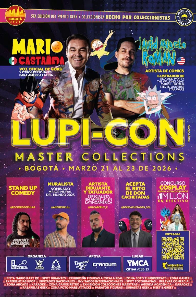 Bogotá recibirá una nueva edición de LupiCon – Master Collections, evento dedicado a la cultura geek, el coleccionismo y el entretenimiento pop que se realizará del 21 al 23 de marzo de 2026 en el Centro de Eventos YMCA. La quinta versión del encuentro contará con invitados internacionales, actividades temáticas y espacios dirigidos a fanáticos del anime, el cómic, los videojuegos y el coleccionismo.