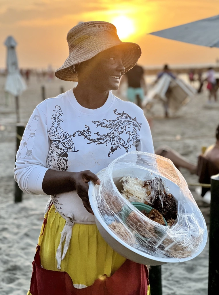 «Hace más de 10 años la conozco y cada vez que nos vemos me saluda con el mismo cariño», nos cuenta Juan Starving, un viajero —uno de tantos— que deja sus historias forasteras en un blog personal para rendir homenaje a Sandra, una vendedora de cocadas —una de tantas— que se gana la vida ofreciendo su dulce a los turistas, propios y extraños, que invaden las playas de la ciudad amurallada.