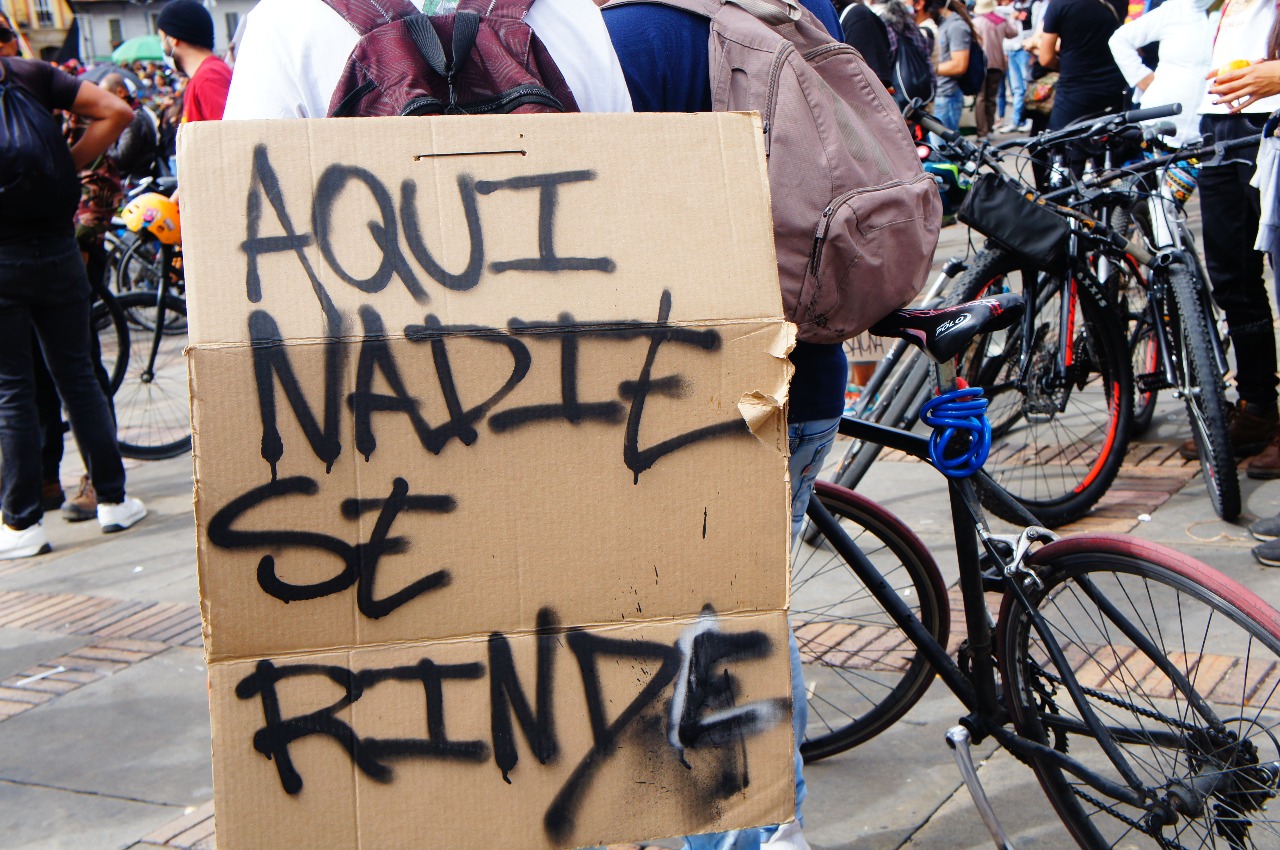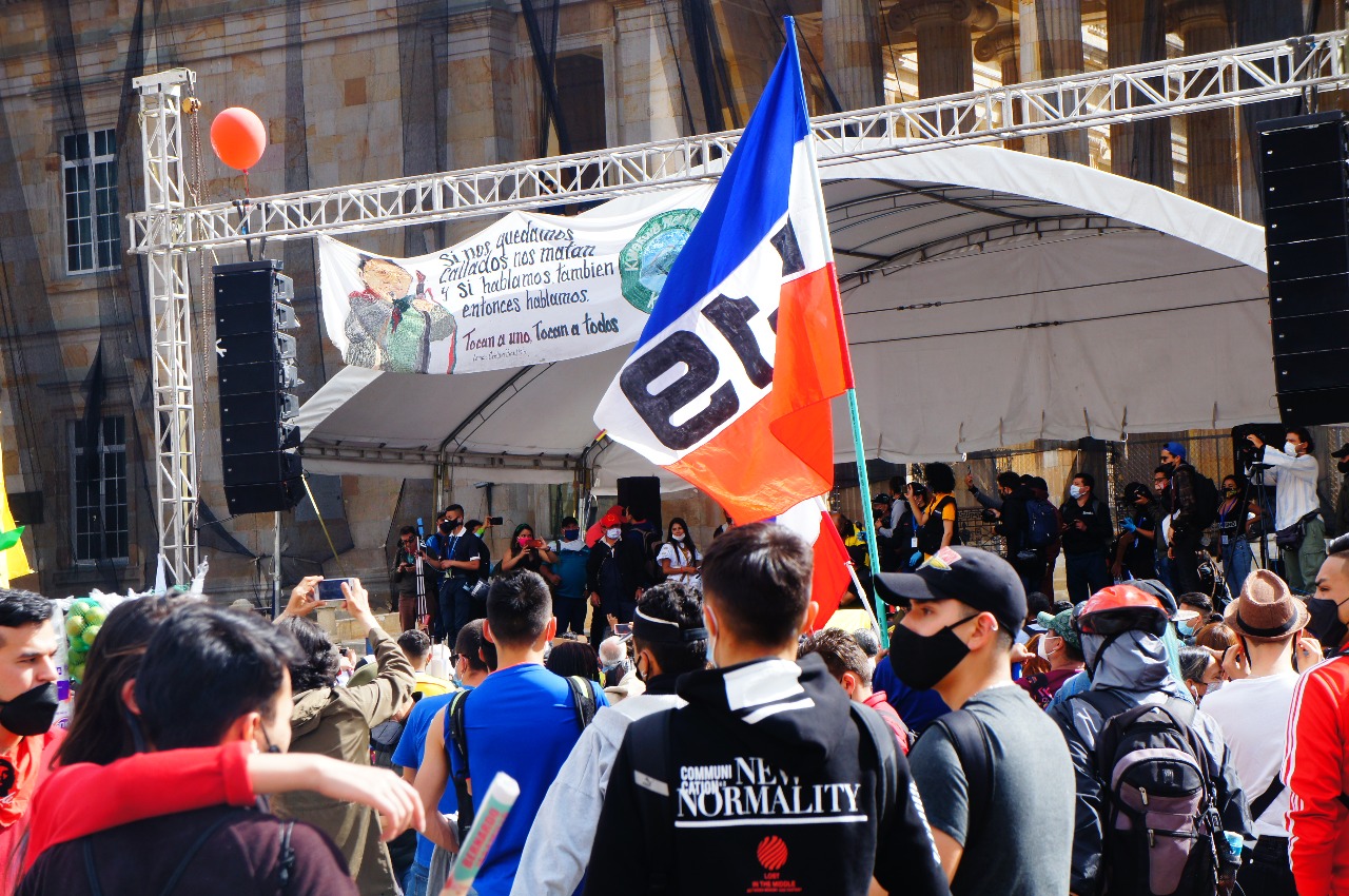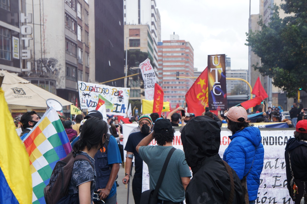 El día miércoles 21 de octubre, en el marco del Paro Nacional, se llevó a cabo una jornada de movilización que llegó hasta la Plaza de Bolívar, exigiendo garantías para la vida en las ciudades, el cuidado de los ecosistemas, de condiciones dignas para los trabajadores y trabajadoras.