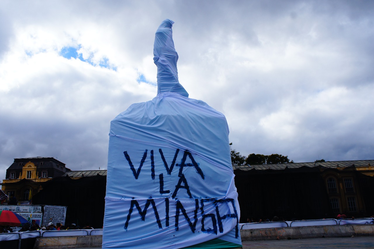 “La minga es un concepto ancestral, forjado por comunidades indígenas, sobre todo de la parte sur del país, y que tiene que ver precisamente con el trabajo colectivo. La minga es el nombre que se la da a la asociación para un trabajo común. Desde 1980 y sobre todo para el 2008, la minga se ubica como una forma de trabajo colectivo para exigir los derechos de las comunidades y comunicar también el cumplimiento de los mismos”. –Tatiana Fernández, integrante de la organización Tierra Libre.