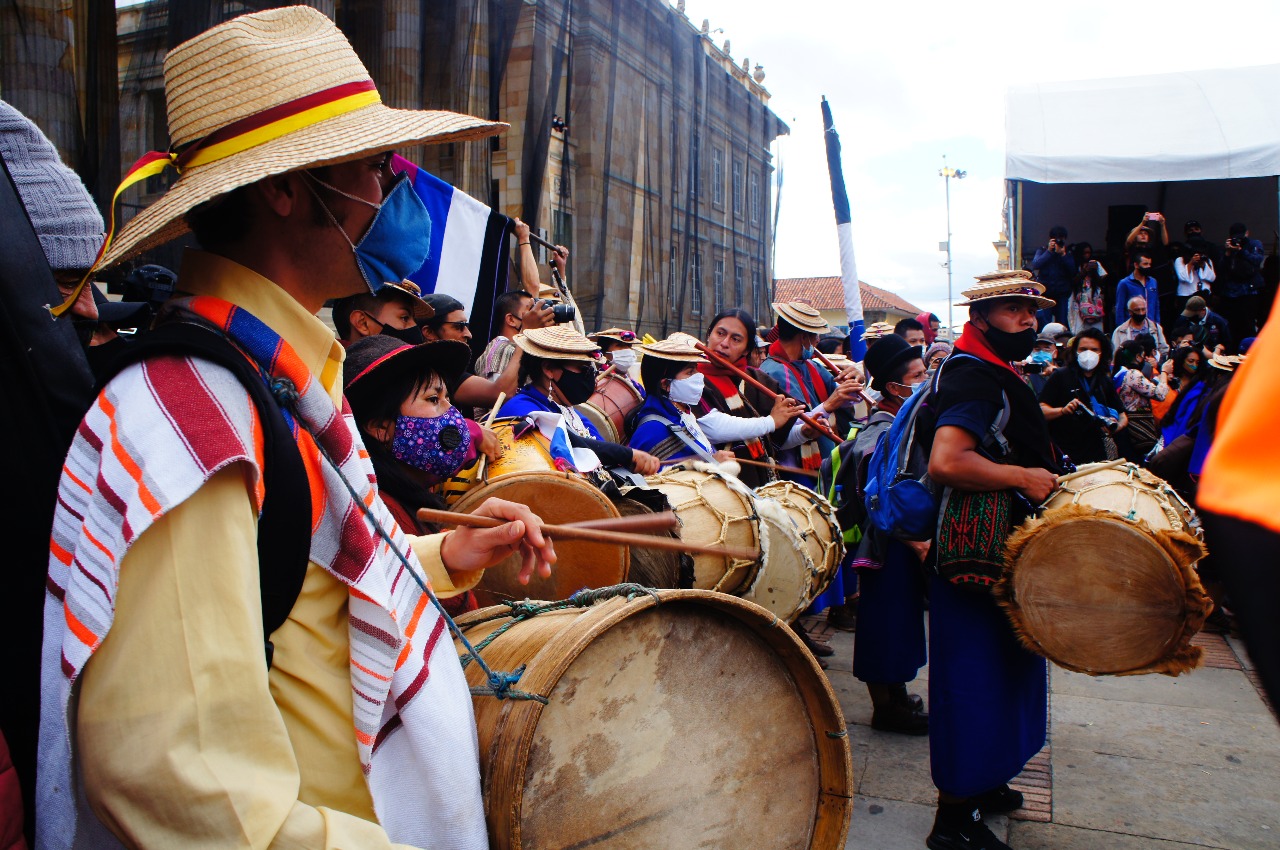 El pueblo nasa, organizaciones campesinas como el Coordinador Nacional Agrario(CNA), el Proceso de Comunidades Negras (PCN) y otras organizaciones sociales, se movilizaron en chivas hacia la ciudad de Bogotá, pasando por Armenia, Cajamarca, Ibagué, Fusagasugá, Soacha, (luego se sumó el pueblo Misak-Misak), para finalmente, asentarse en el Palacio de los Deportes de Bogotá.